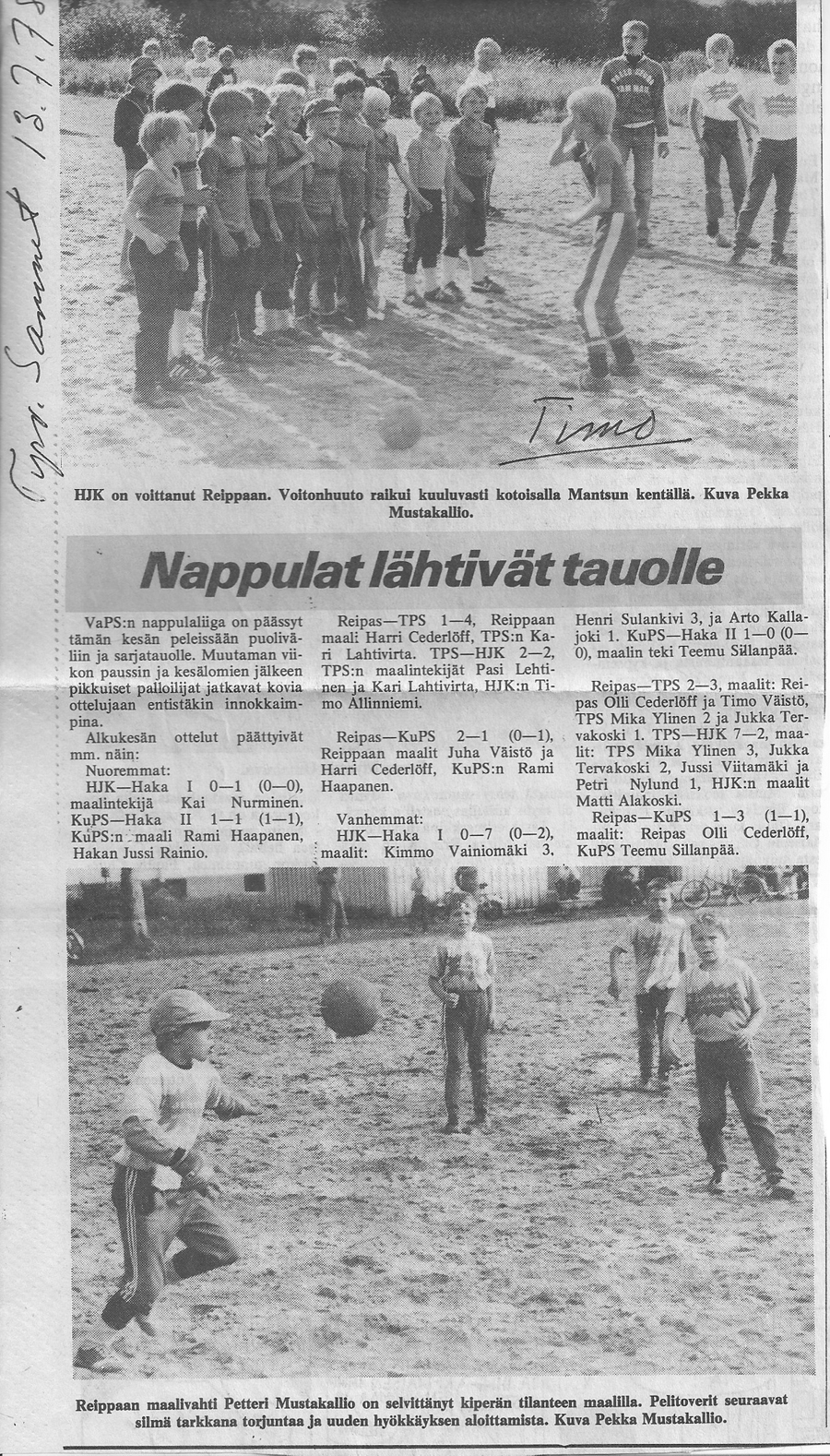 Tämäkin kuva Allinniemen Timpan äidin hoteista! Kuvasta tunnistaa helposti valmentaja Jussi Vieraan, mutta keitä ovat muut?