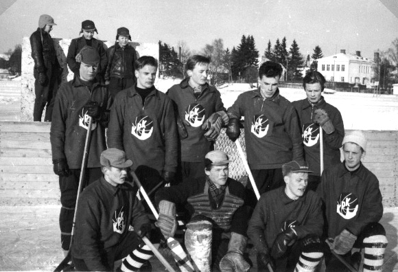 VaPS:n kaatajat Kaalisaaressa 1958. Edestä vasemmalta: Heikki Lehtoranta, mv Matti Eno, Pentti Kuusisto, Rauno Lehtoranta, Takaa vasemmalta: Risto Kero, Väinö Hämäläinen, Matti Hakanen, Veijo Hakala, Harri Lehtoranta. Taustalla näkyy Aittalahden koulu.