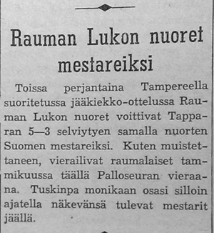 Tammikuussa Kaalisaaressa näyttäytynyt Rauman Lukon A-juniorijoukkue voitti Suomen mestaruuden.