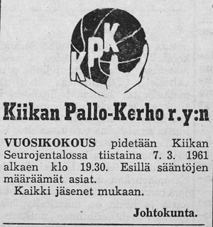 Kiikan Pallo-Kerho piti vuosikokoustaan.