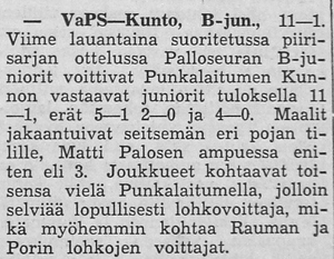 Maakuntasarja jatkui kiivaana. Palloseuran B-juniorit rökittivät Punkalaitumen Kunnon.