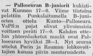 Palloseuran B-juniorit löivät Punkalaitumen Kunnon kahden ottelun yhteismaalein 28-1, raivaten tiensä pelaamaan piirinmestaruudesta Porin ja Rauman lohkovoittajien kanssa.