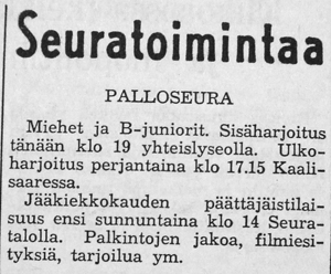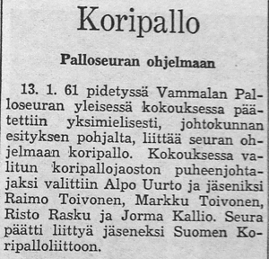 Palloseura otti koripallon ohjelmaansa yksimielisesti. Koripallojaoston puheenjohtajaksi valittiin Alpo Uurto ja jäseniksi Rauno Toivonen, Markku Toivonen, Risto Rasku ja Jorma Kallio. Seura päätti myös liittyä Suomen Koripalloliittoon.