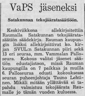 Raumalle puuhattiin myös tekojäärataa, jonka rakentaminen olikin käynnistetty vuoden 1961 aikana. Palloseurakin lähti mukaan Satakunnan tekojääratasäätiöön, josta uskottiin olevan apua krooniseen jääpulaan.