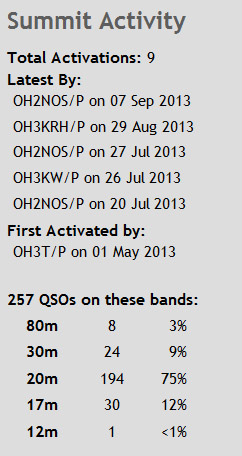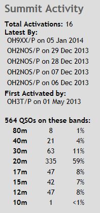 Jyränvuori (OH/JS-066) is number one in Finland today. During time period 1.5.2013 - 5.1.2014 has been done sixteen summits together.