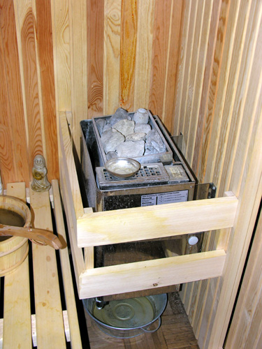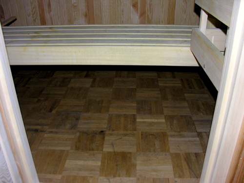 No, se toinen juttu oli sitten saunominen. Se on varsin isänmaallista kaikin muodoin, mutta kattos lattiaa! Meillä parkettia pannaan asuinhuoneitten lattiaan, ei saunaan!?! Taas törmättiin käkikellomaan erikoisuuksiin. Ei kumminkaan haitannut millään muotoa saunomista: hyvin lämpesi, hiki tuli ja löylyt oli makoisat ja päälle tietenkin saunaoluet!