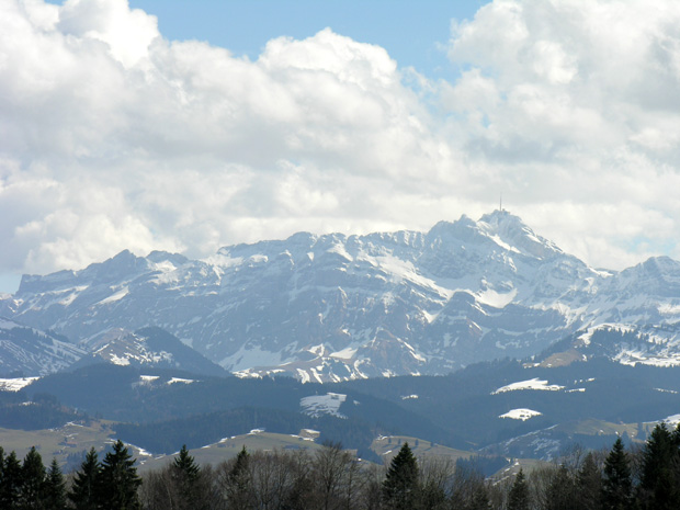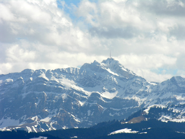 Sama kuva vähän Säntisin sääasemaan tarkennettuna. Säntis on muuten karvan yli 2500m korkea vuori.