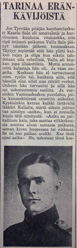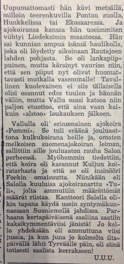 Uuno Uldemar Ulvion kirjoitus eränkävijä Vallu Salosta