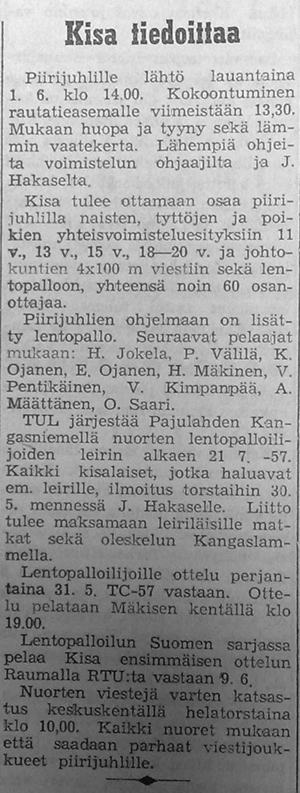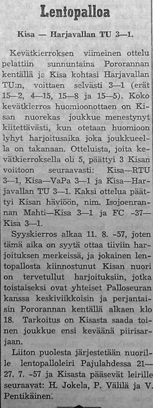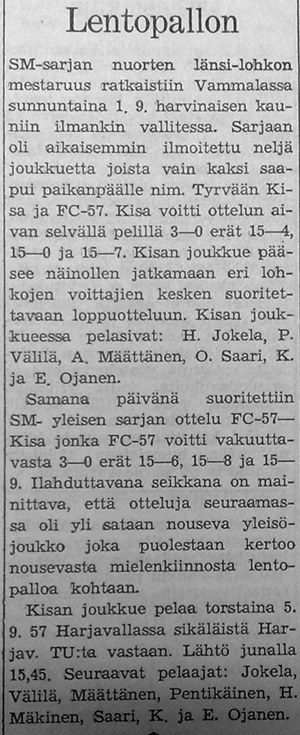 Lentopallotapahtumat 1.1.1957-31.12.1957