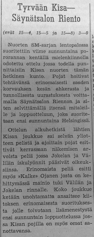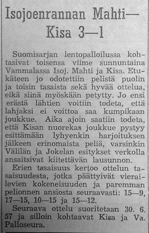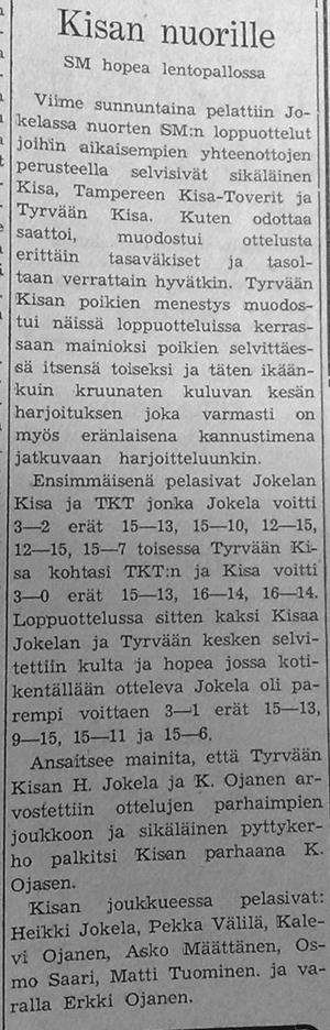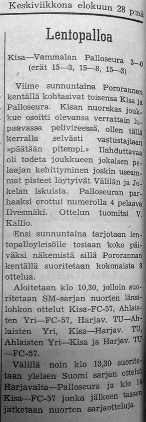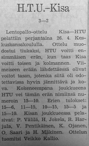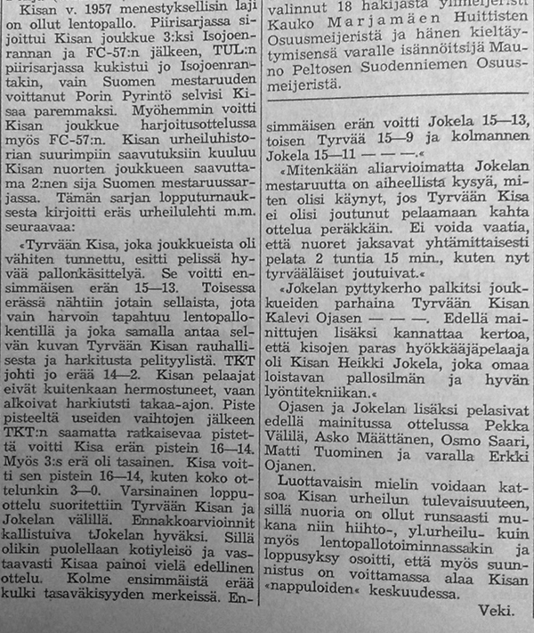 Kivelän Veikon yhteenveto Kisan lentopallosta.