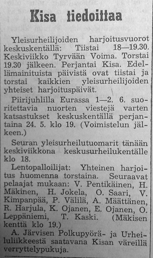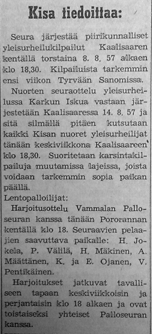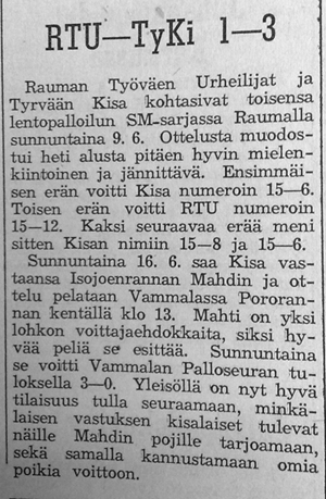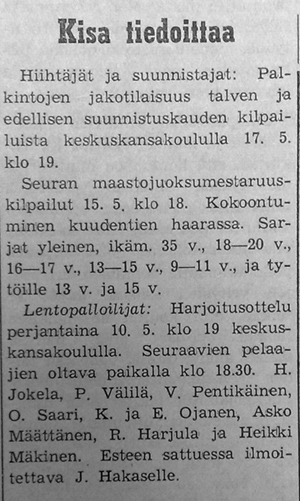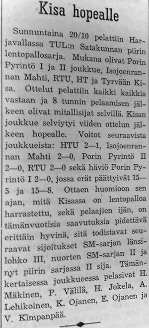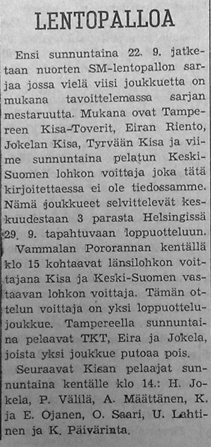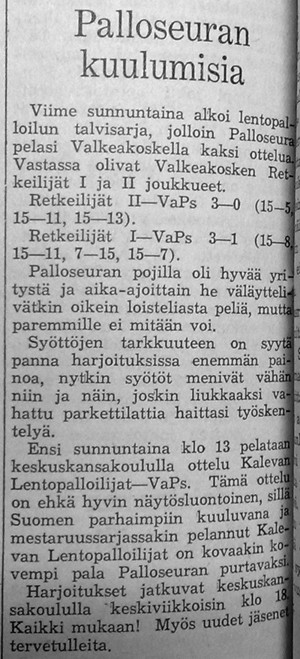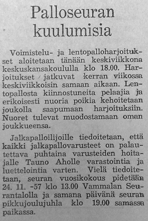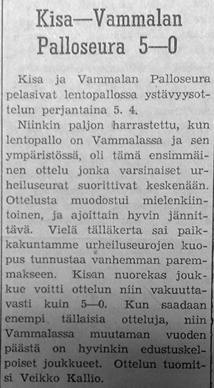Kannattaa huomioida Palloseuran parhaana palkittu nro 4, Ilvesmäki. Kyseessähän on myöhemmin Vammalan Seudun Voiman peräsimessä vuosia toiminut Ilvesmäen Veikko. Hän oli myös mukana Vammalan Lentopallon eli VaLePan perustamispuuhissa .