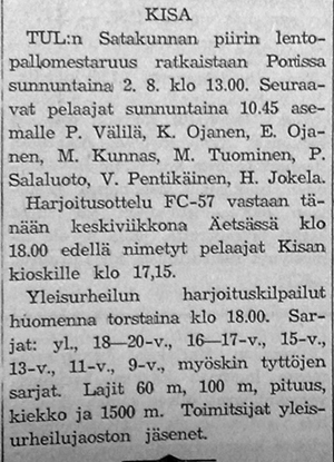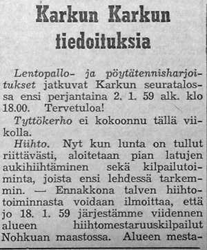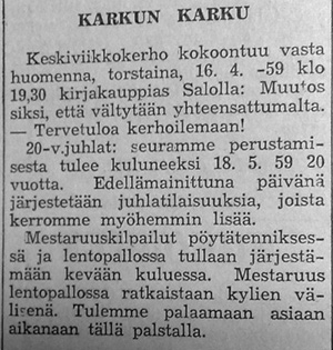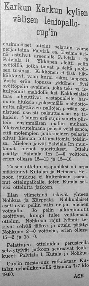 Karkun Karku järjesti kylien välisen lentopallo cupin kesällä 1959.