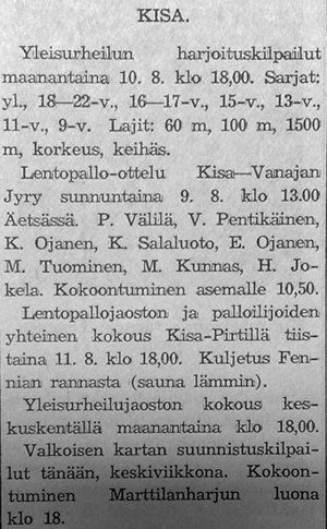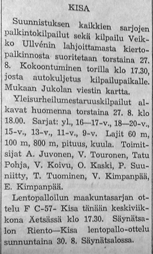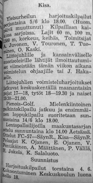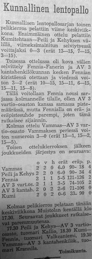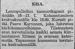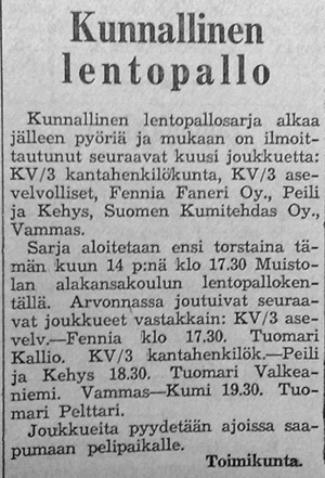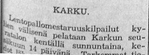 Karkun Karku käynnisti aktiivisen lentopallotoiminnan, jonka myötä pelattiin myös kylien mestaruudesta myöhemmin kesällä.