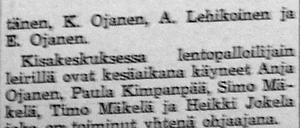 Kisan nuoret esiintyivät kokoonpanolla E. Ojanen, T. Viander, S. Mäkelä, S. Rantanen, R. Tuomisto, T. Laitinen ja M. Järvensivu.