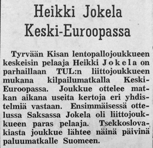 Jokelan Heikki matkasi TUL:n liittojoukkueen kanssa Keski-Eurooppaan. Ammattikoulun uuden voimistelusalin rakentaminen käynnistyi. Se tuli olemaan Kisan seuraavan nousun alttarina.