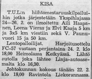 Kisa oli mukana myös TUL:n nuorten talvisarjassa.